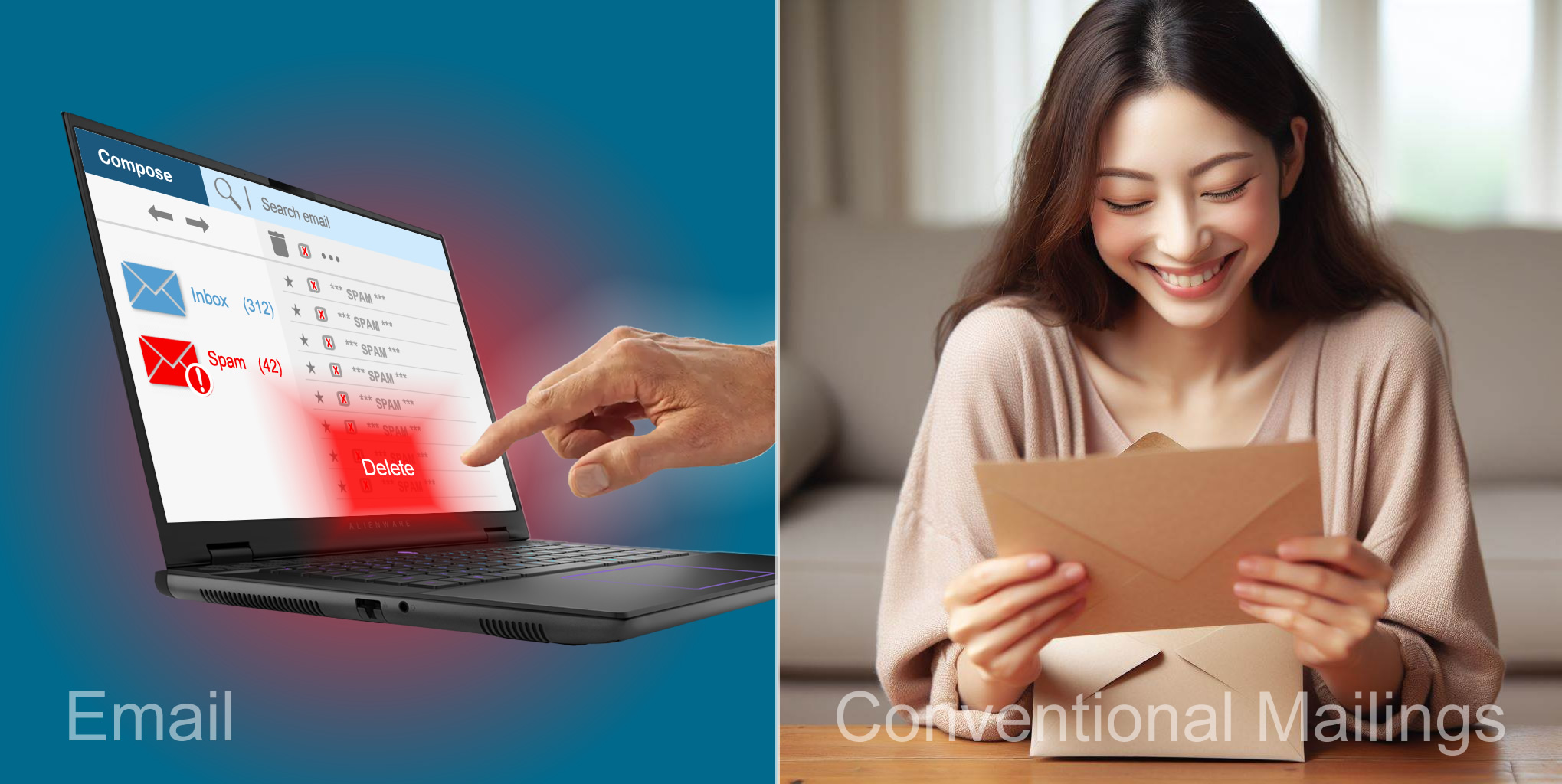 Conventional mailings have a 4.4% response rate vs email at 0.12%